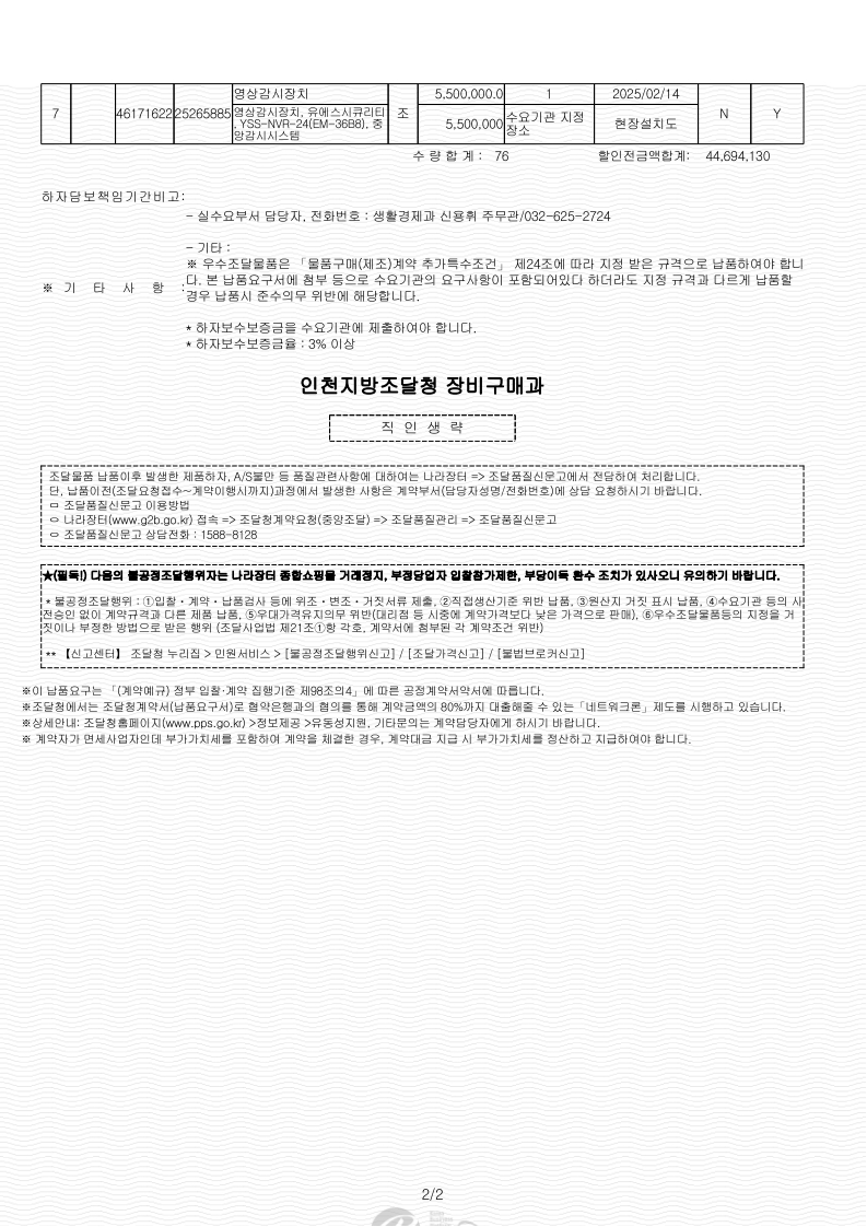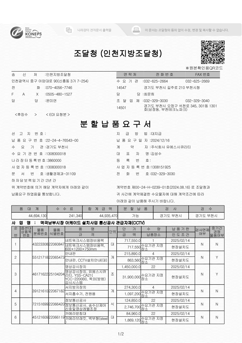 [ 22-24-4-76543-00 ] 역곡남부시장 아케이드 설치사업 통신공사 관급자재(CCTV) 페이지 정보 작성자 관리자 작성일25-01-16 13:41 조회799회 댓글0건 관련링크 목록 본문 역곡남부시장 아케이드 설치사업 통신공사 관급자재(CCTV) 목록